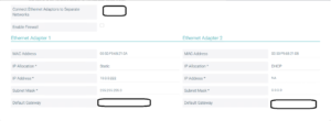 Fields impacted: Ethernet Adapter 1 Default Gateway, Ethernet Adapter 2 Default Gateway, Connect