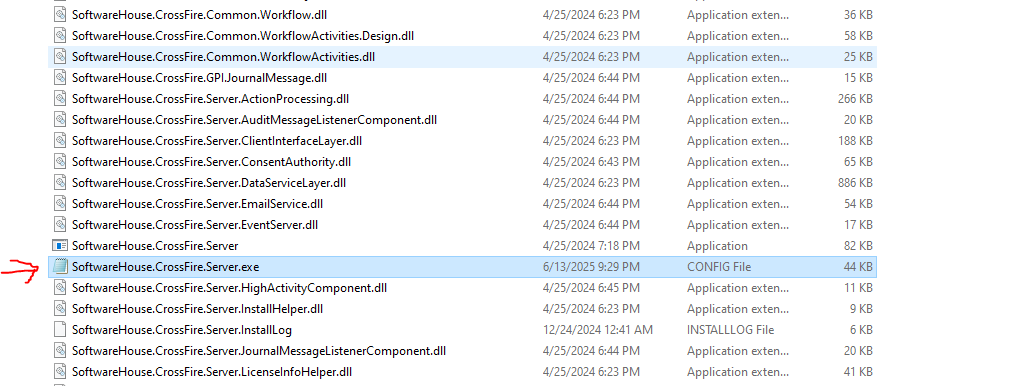 C:\Program Files (x86)\Tyco\CrossFire (assuming C is the installation drive) and open up the “SoftwareHouse.CrossFire.Server.exe” as shown below: