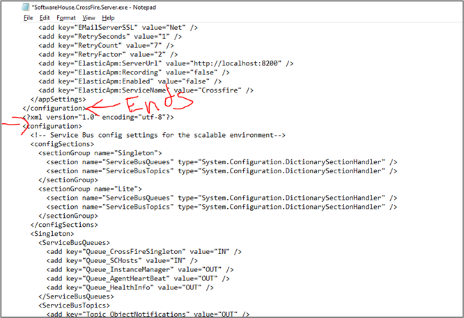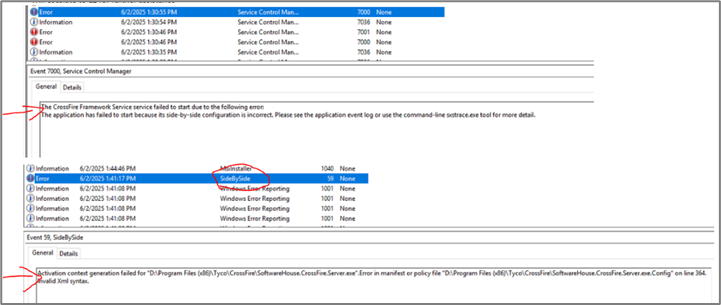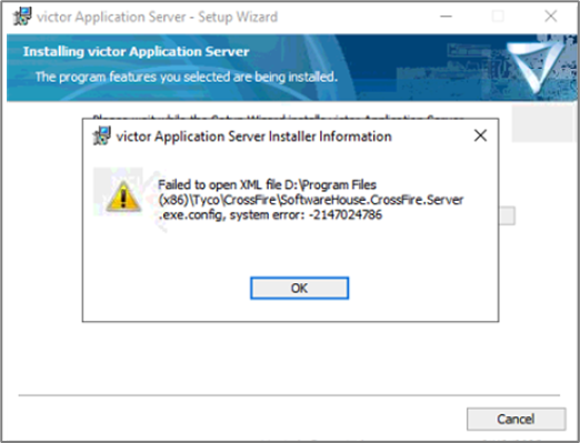 Fail to open XML file C:\Program Files(x86)\Tyco\CrossFire\SoftwareHouse.CrossFire.Server.exe.config, system error: -2147024786