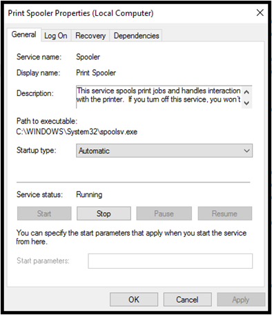 - Ensure that the Windows PRINT SPOOLER Service startup type is set to “Automatic”,